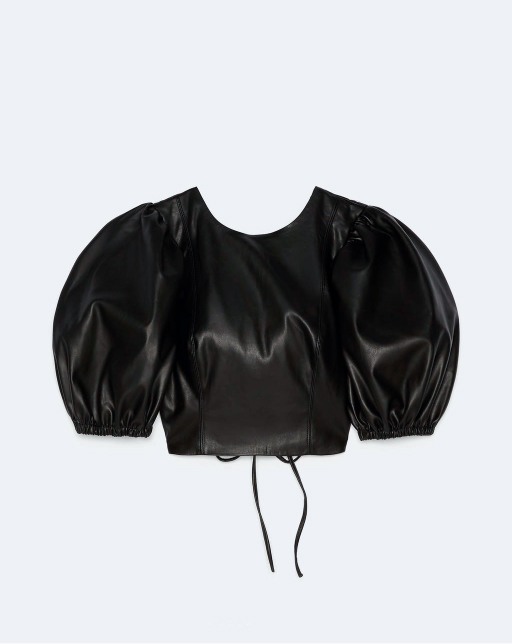 The insulated jacket is made of leather. A light layer of insulation. Details: stand-up collar, zipper, two pockets on the sides.